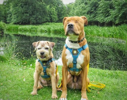 Staffordshire Terrier o imieniu Amos, urodził się w schronisku dla zwierząt – jego matkę znaleziono na krótko przed porodem. Z miotu ośmiu szczeniąt przeżyły tylko trzy, w tym Amos. Niewidomy szczeniak podbił serca pracowników schroniska, którzy starali się szybko znaleźć mu przynajmniej tymczasowy dom. Amos trafił do doświadczonej wolontariuszki Jess Martin. Kobieta zabrała szczeniaka do weterynarza, który stwierdził, że ma odwarstwienie siatkówki.