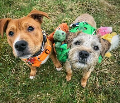 Toby od wielu lat „pracował” jako pies terapeutyczny dla osób z demencją w domu opieki. Po przejściu na emeryturę trafił do Jess. Pies był jej jedynym pupilem przez osiem lat. Ale nie jest już sam. Niewidomy Amos stał się dla niego przyjacielem – pies terapeuta był przyzwyczajony do opieki nad innymi i teraz czuł się na swoim miejscu. Nosił szczeniakowi miskę wody, pomagał mu poruszać się po domu, którego teraz nie widział.