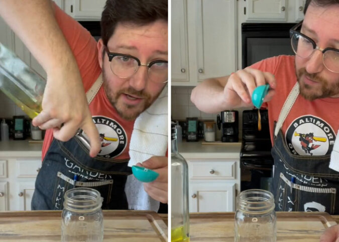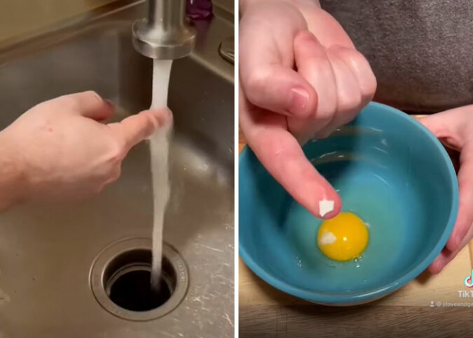 Wygodniej jest wyciągnąć kawałki skorupki z jajka mokrymi palcami