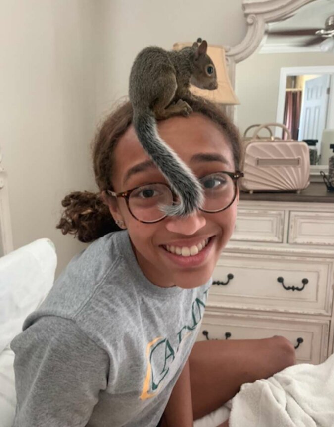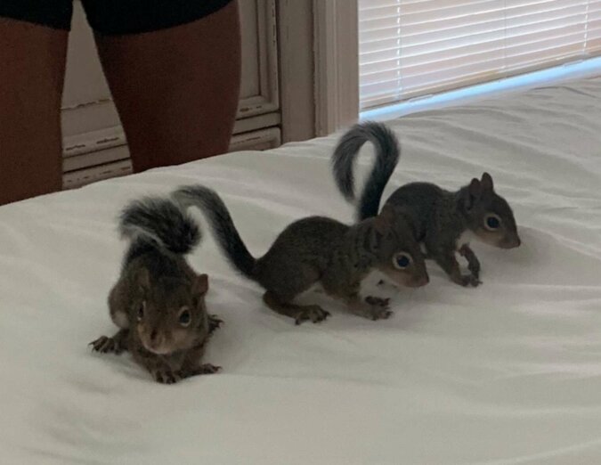 Po drodze Bailey skontaktowała się ze znajomym weterynarzem i dowiedziała się, jak karmić i opiekować się wiewiórkami. Stworzenia okazały się niespokojne, ale wdzięczne - zjadły i zaczęły badać okolicę. Najbardziej spodobało się im wspinać się na samej Bailey.