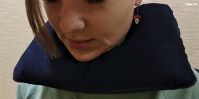 Kobieta rezygnowała z bezużytecznego przedmiotu w bagażu, dopóki nie zorientowała się, że po prostu nie używa poduszki w prawidłowy sposób. Sen jest zupełnie inny, jeśli „podkowa” jest odwrócona końcami do tyłu głowy. Głowa jest nadal podparta z obu stron, a szczelina między pozwala wygodnie dopasować poduszkę, wtedy głowa nie opada.