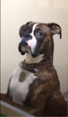 Po powrocie chłopaka czekała na niego niespodzianka. Trudno nie schować ogona (nawet jeśli go nie masz), kiedy patrzą na ciebie tak przenikliwym spojrzeniem. Jesteśmy pewni, że pies cieszy się na widok swojego właściciela - ale czemu nie merda ogonem, nie skacze z radości? Prawdopodobnie chodzi o to, że bokser wie: został porzucony celowo.