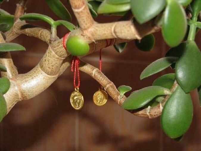 Jeśli masz już w domu dojrzałego grubosza, możesz po prostu zakopać monetę w doniczce. Ten talizman nadal będzie działał na twoją korzyść! Właściwe będzie zawiązanie kilku czerwonych wstążek z monetami na gałęziach. Patrząc na nie zawsze będziesz myśleć, że pieniądze same idą w twoje ręce…