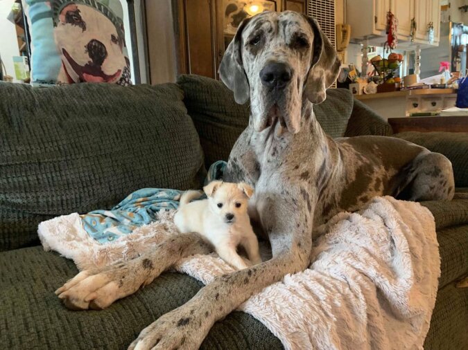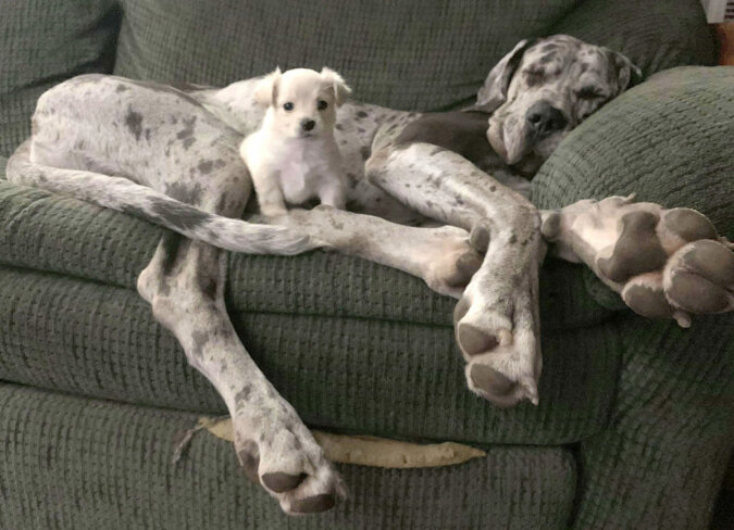 Od dawna wiadomo, że przeciwieństwa się przyciągają. Psy również. Dwa niezwykłe pieski, które mają bardzo dużą różnicę w wielkości i charakterze, stały się przyjaciółmi! To duży pies o imieniu Shelby i malutka chihuahua o imieniu Bianca. Są razem od urodzin chihuahua. Teraz się nie rozstają. Ich wspólne zdjęcia są po prostu wzruszające. Jednym słowem – najlepsze przyjaciółki.