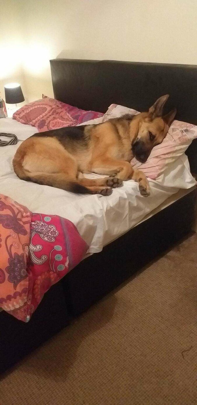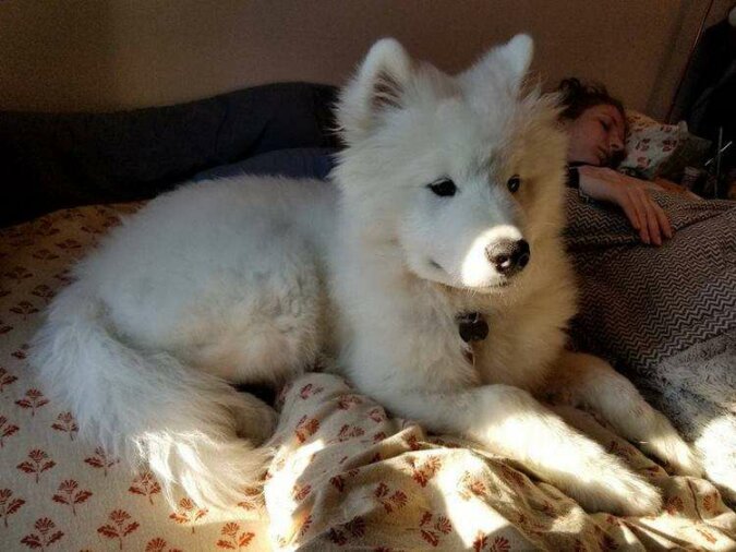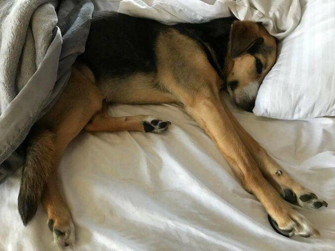 Pies położył się wygodnie, czego nie można powiedzieć o ludziach