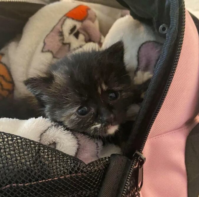 Arianna z Montrealu z koleżanką wybrała się na wędrówkę po górach i na jednym z zakrętów szlaku spotkały starszego mężczyznę. Wyglądał na bardzo zaniepokojonego, ponieważ nie mógł znaleźć kociaka, chociaż słyszał jego płacz. Wspólnymi wysiłkami, nie od razu, cała trójka znalazła maleństwo.
