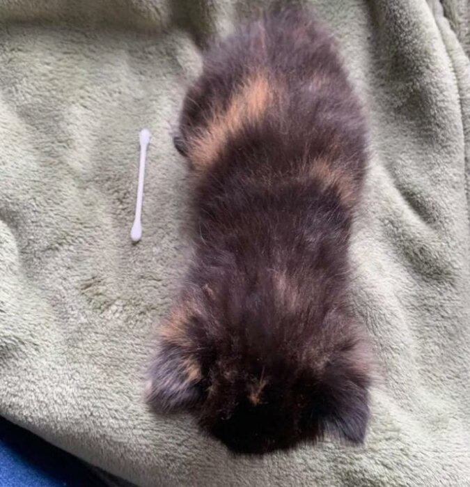 Całkiem zadbana, z piękną sierścią, ale bez śladów obroży i generalnie znaków identyfikacyjnych, koteczka z lesu wydawała się dzika. Bez względu na to, ile szukała Arianna, w pobliżu nie znaleziono nikogo innego. Skąd wziął się kotek? To wciąż tajemnica.