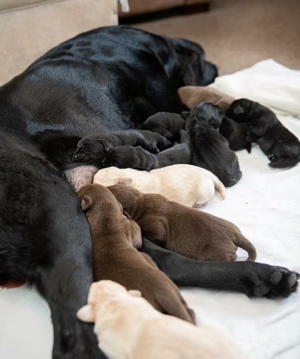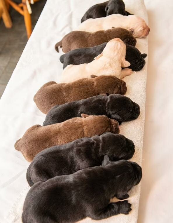 Oto one, rekordowe szczeniaki: czarne, beżowe i czekoladowe.