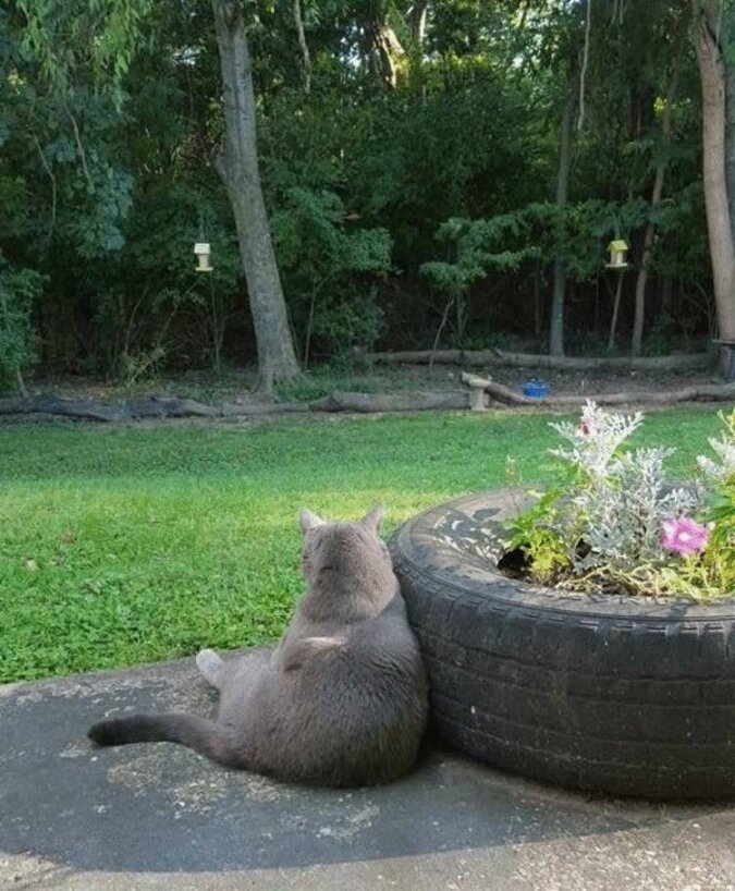 Minął rok. Kot nauczył się harmonogramu karmienia i we właściwym czasie zaczął zbliżać się do drzwi wejściowych. „Rozmawiałam z nim, a on rozpoznawał mój głos”.