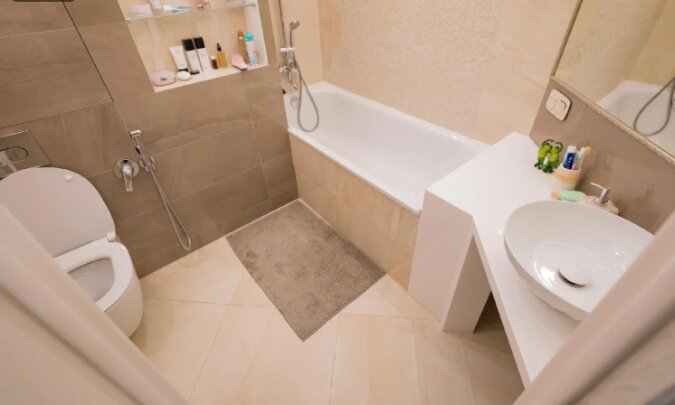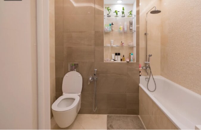 Kable były ukryte w ścianie. W samym rogu wstawiono wannę. Wzdłuż ścian ustawione były wszystkie niezbędne rzeczy.
