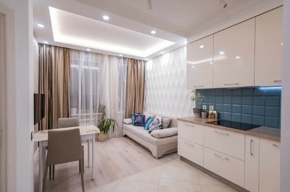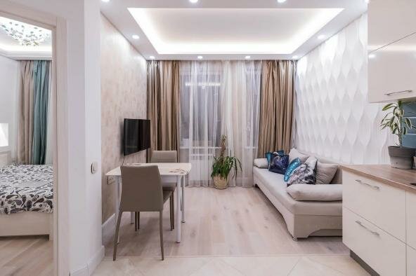 Właścicielka mieszkania o powierzchni 32 metrów kwadratowych chciała przeprowadzić remont. Zależało jej na osobnej sypialni, aneksie kuchennym, garderobie i łazience z wanną. Z tego powodu chciała, aby układ jej mieszkania był jak najbardziej funkcjonalny. Remontowcy wykorzystali każdy milimetr przestrzeni.