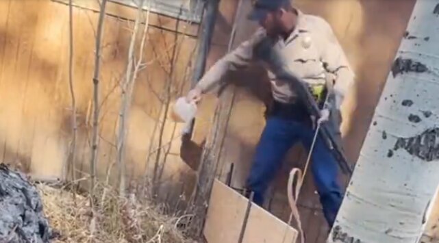 Na miejsce zdarzenia został wezwany inspektor z Colorado Parks and Wildlife. Próbował wywabić drapieżnika, rozlewając amoniak przy wejściu do gawry. Udało się. Niedźwiedź obudził się, wyskoczył z gawry i uciekł do lasu.