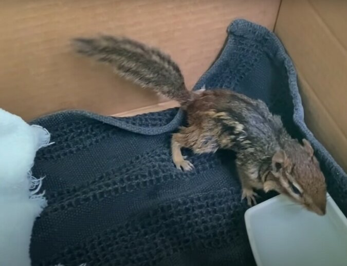 Eksperci zapewnili Chrissy, że wszystko będzie dobrze. Powiedzieli, że pręgowiec prawdopodobnie jest w szoku, z którego wkrótce zacznie się wychodzić. I tak się stało. Początkowo Chippy nie wykazywał oznak życia. Ale potem spróbował wstać i zadrżał gwałtownie. Nieco później zwierzę było w stanie poruszać się po pudle i dostało się do pojemnika z wodą, skąd wzięło kilka łyków. To był dobry znak. Pręgowiec otrząsnął się z szoku, którego doznał, i po chwili zjadł.