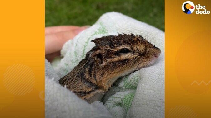 Zwierzę nie mogło w żaden sposób wydostać się zwodnej pułapki. Było prawdopodobnie wyczerpano, bo nie stawiało oporu: Chrissy z łatwością wzięła je w ramiona i owinęła w miękki ręcznik. Pręgowiec prawie się nie ruszał, a zmartwiona ratowniczka postanowiła poszukać pomocy: zadzwoniła do lokalnej służby obrony zwierząt, aby zapytać, co zrobić ze znalezionym młodym, który otrzymał przydomek Chippy.