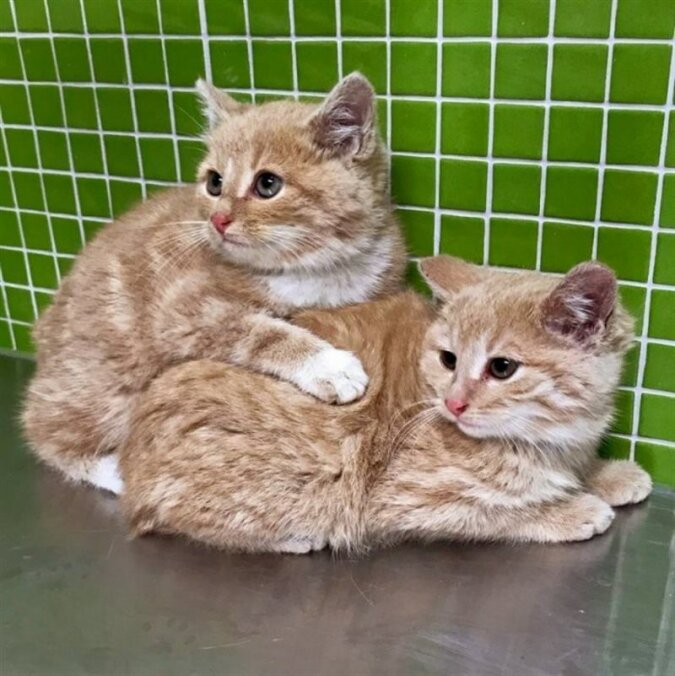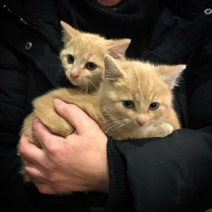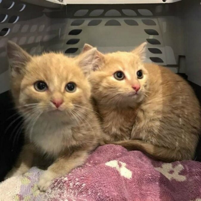 Dwa małe zabłąkane kociaki trafiły do obszaru przemysłowego w Montrealu w Kanadzie, gdzie często błądzą bezdomne zwierzęta. W pobliżu było kilku pracowników i od razu zauważyli rude sierściuchy - dzieciaki patrzyły przez okno żałosnymi i głodnymi oczami.