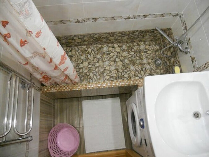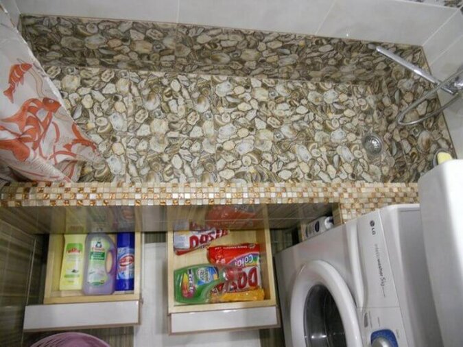Wynik był satysfakcjonujący. Między pralką a wanną pozostało jeszcze trochę miejsca - dodano tam półki.