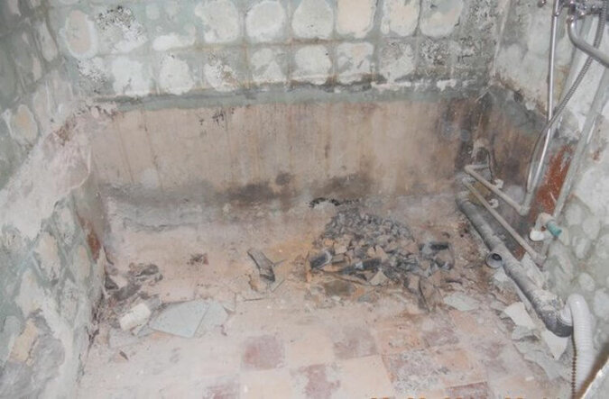 Przede wszystkim demontaż wanny, stare kafelki, santechniki i okablowania. Teren został zwolniony do dalszych prac.