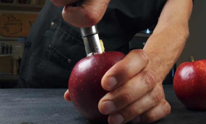 Najpierw obierz jabłka, a następnie zetrzyj je na tarce o grubych oczkach. Wymieszaj z cukrem i cynamonem. Posiekaj orzechy włoskie. Już prawie jest gotowe.