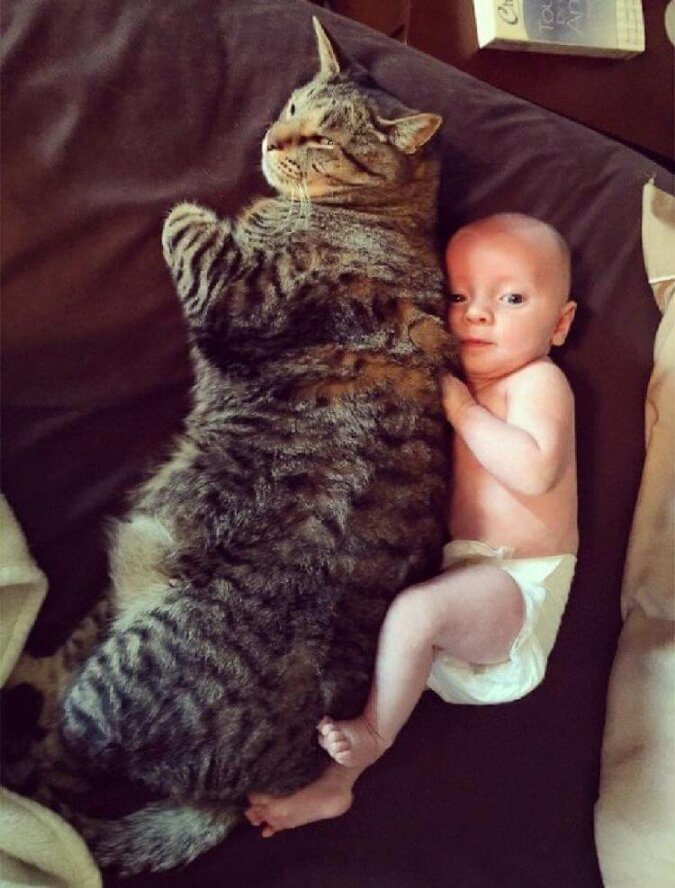 Dallas i jego rodzina adoptowali kota o imieniu Puma prawie 10 lat temu. Ten duży pręgowany zwierzak był dwa razy większy od niemowlaka, kiedy przybył do domu tej rodziny.