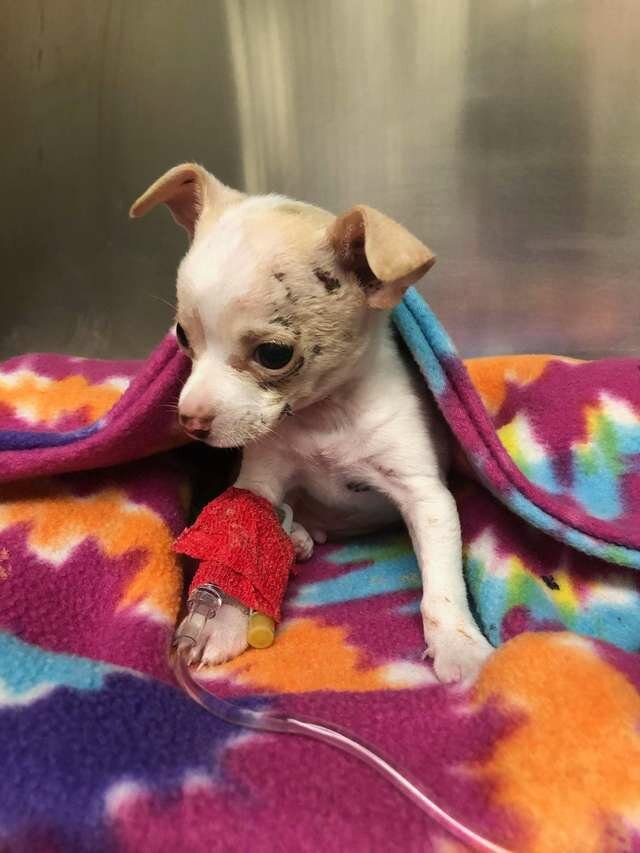 Gdy tylko pracownicy budowlani zorientowali się, co się dzieje, ptak puścił szczeniaka i maleństwo spadło. Mężczyźni podbiegli do miejsca, w którym miał się znaleźć szczeniak. To był pies rasy Chihuahua. Podnieśli biedne zwierzę i popędzili do weterynarza, mając nadzieję, że zwierzę nie zostało poważnie ranne. W klinice dowiedzieli się, że pies nie był czipowany, więc szczeniak trafił do schroniska Austin Animal Center.