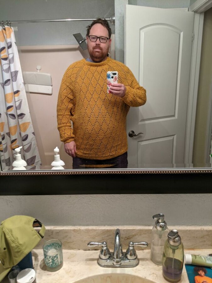 Dowód na to, że dzierganie jest dostępne dla każdego. Zrobił na drutach swój własny sweter.