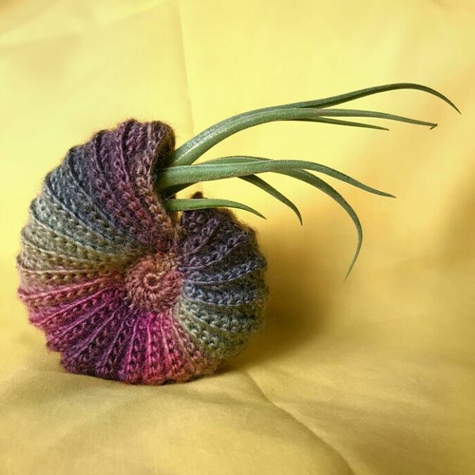 Roślina jest prawdziwa, ma dzianinową "doniczkę" - muszlę