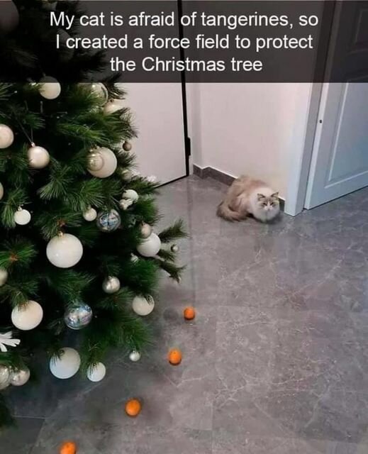 Olokko postanowiła wykorzystać strach swojego kota w życiu codziennym. Rozkładała mandarynki wszędzie tam, gdzie Victorowi nie wolno było podejść, na przykład na fotelach i sofach. I tak, ubierając choinkę na Boże Narodzenie, Irena zdała sobie sprawę, że w ten sam sposób może ją uchronić.