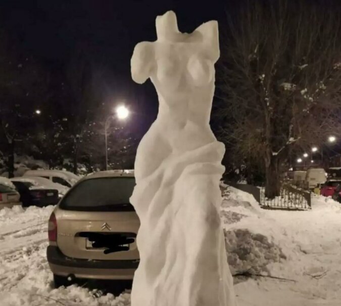 Śnieżna rzeźba, która bardzo przypomina „osobę, która czeka”