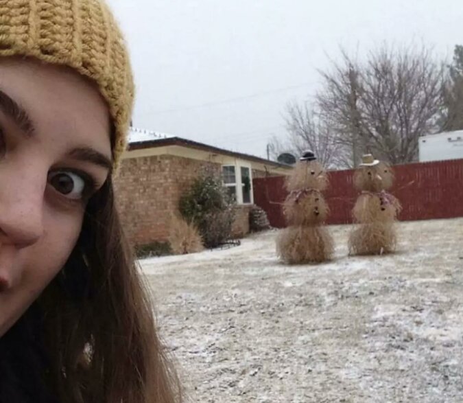 Ta wspaniała para w tle jest wynikiem nieudanej zimy w Teksasie. Ale prawdziwego artystę nic nie powstrzyma!