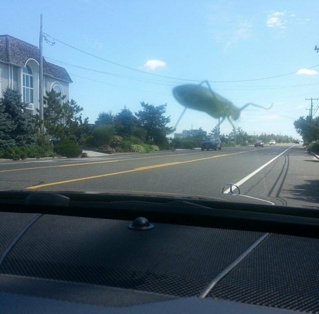 Gigantyczny owad schodzi z nieba na ziemię. Dobrze, że osoba, która to uchwyciła, jest w samochodzie