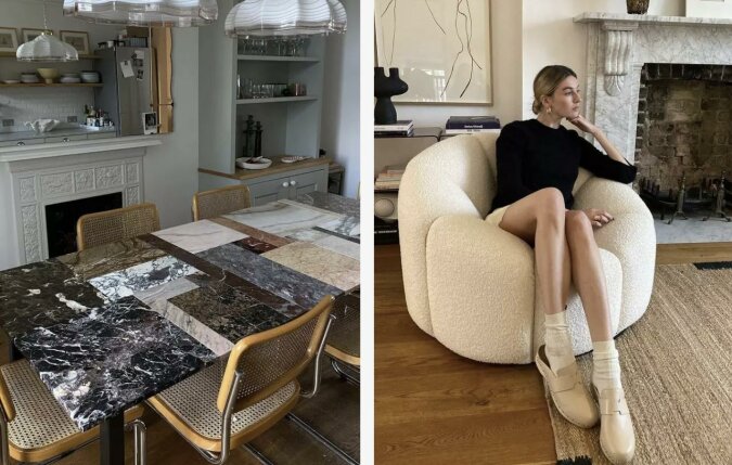 Blogerka o imieniu Camilla sugeruje eksperymentowanie z teksturami. Zwróć uwagę na jej biurko: blat wykonany jest z marmurowego materiału z kontrastowymi białymi smugami. A grube ramy na obrazy i lustra pozwalają stworzyć poczucie luksusu w każdym pomieszczeniu, od łazienki po wyjście z domu czy balkon.
