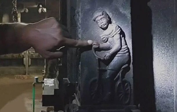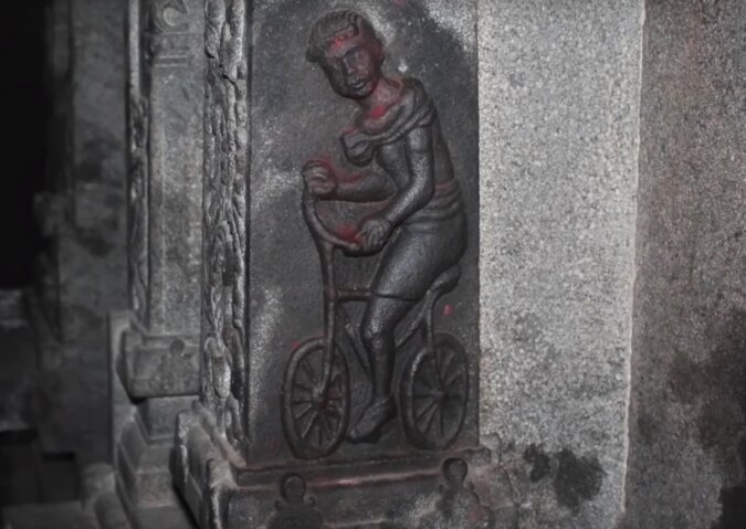Odwiedzający starożytną indyjską świątynię Panchavarnaswamy mogą doznać szoku kulturowego. Na ścianie budowli, wzniesionej podobno dwa tysiąclecia temu, w niepozornym zakątku znajduje się płaskorzeźba przedstawiająca mężczyznę na rowerze.