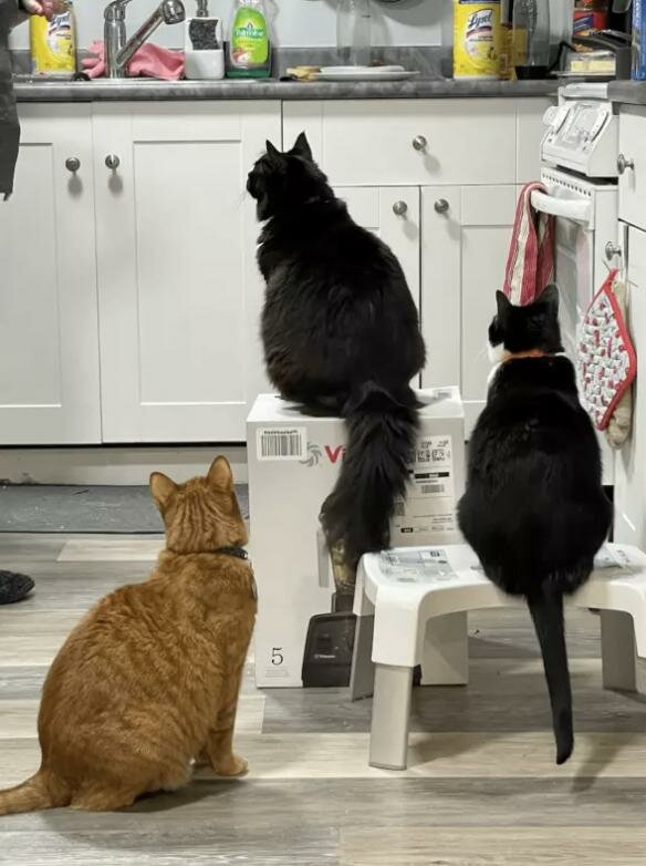 Użytkownicy pytali w komentarzach, dlaczego koty nie mogą być zamknięte w innym pokoju na chwilę lub zabrane z miksera. Ale Jessica i Nicky uważają, że nie mają prawa odbierać rozrywki swoim pupilom. Nawet coś tak dziwnego jak pilnowanie pudełka.
