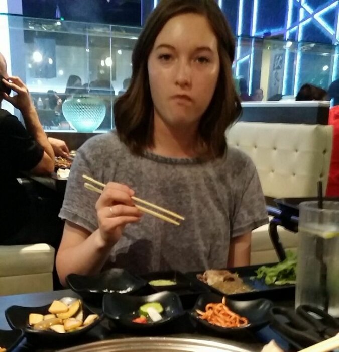 Moja siostra jest po raz pierwszy w azjatyckiej restauracji. Powiedziałam, że właśnie zjadła podroby