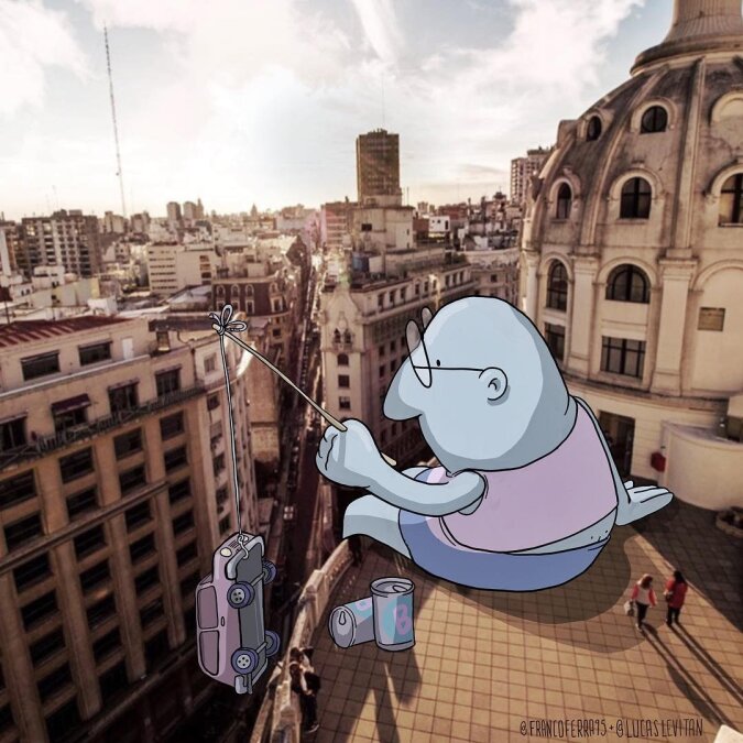 Londyński artysta Lucas Levitan daje nam możliwość nie tylko spojrzenia na świat w nowy sposób, ale także „potraktowania” rzeczywistości za pomocą fantazji. Artysta przekształca cudze fotografie w ramach projektu „Photo Invasion”. Nikt nie oburza się na łamanie praw autorskich - dzięki artyście zdjęcia stają się bardzo urocze, miłe i naiwne. Wybraliśmy 20 jego prac, które z pewnością cię rozweselą.