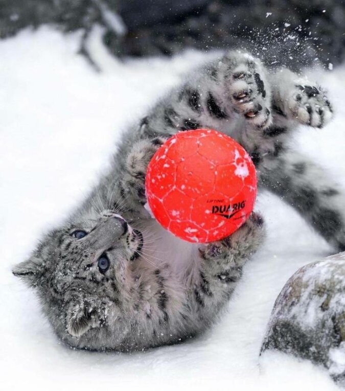 Wspaniale jest bawić się piłką w zimie
