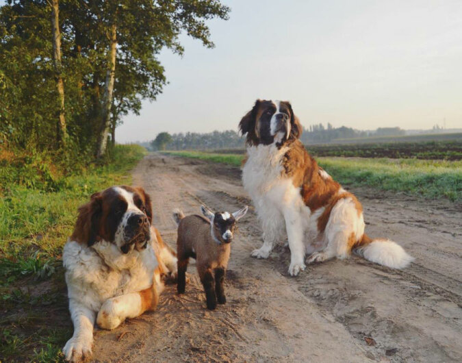Niezwykłe przyjaźnie u zwierząt to zawsze historia warta opowiedzenia. Ta historia jest o uroczym koziołku o imieniu Hans, który jest wychowywany przez dwa wspaniałe bernardyny. Właścicielką tej dziwnej, ale uroczej rodziny jest Isolde, studentka z Belgii, która lubi spędzać większość wolnego czasu ze swoimi zwierzętami na wiejskiej farmie.
