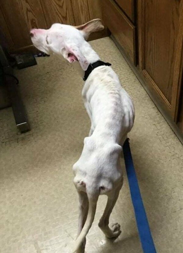 Rosabella - bo tak nazywał się pitbull - trafiła do schroniska Ruff Start Rescue, gdzie została zbadana przez lekarzy. Było jasne, że pies był bardzo źle pielęgnowany i maltretowany. Stare siniaki i spłaszczone stopy wskazywały, że Rosabella spędziła większość swojego życia w klatce. Pies ważył tylko 8,5 kilograma - o 12 kilogramów mniej niż norma!