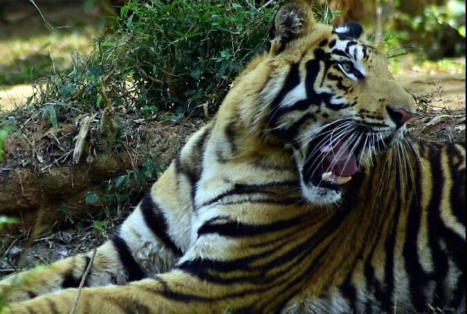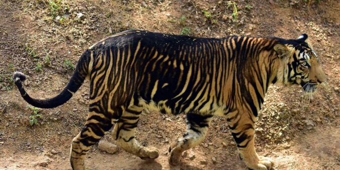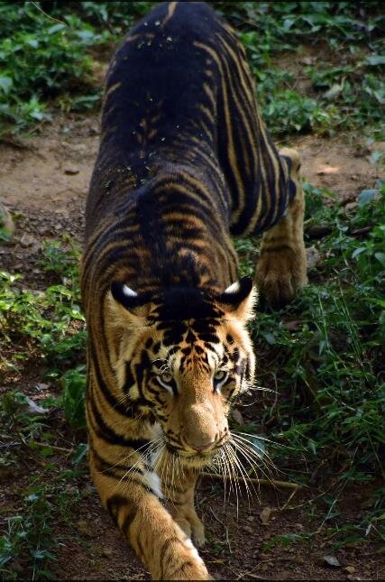 U takich tygrysów ciemne paski są znacznie ciemniejsze i prawie się łączą