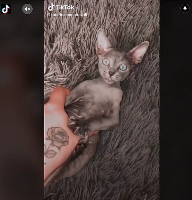 Dziewczyna najwyraźniej uległa pokusie zakupu bezproblemowego kota i skorzystała z pomocy rosyjskiego portalu Avito, gdzie można kupić zwierząt od innych. Jak wiecie, łyse koty są teraz drogie. Nie mają sierści, więc nie muszą się lizać, a ślina kota jest silnym alergenem. Dlatego koty sfinksy są bardzo popularne wśród osób cierpiących na choroby alergiczne, takie jak pokrzywka czy astma. Ponadto zwierzęta te bardzo marzną, co stało się powodem ich wielkiej miłości do siedzenia na rękach ich właścicieli. A sprzątanie mieszkania zajmuje mniej czasu, bo te zwierzęta się nie linieją. Tak wyglądał kociak Ekateriny, kiedy go kupiła.