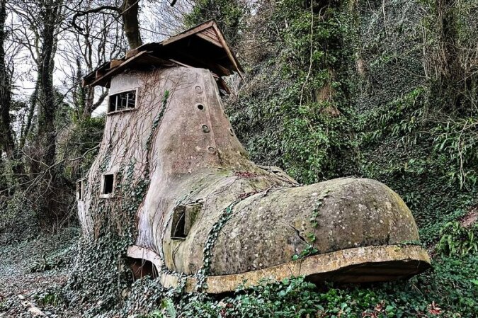 Oryginalna budowa, w kształcie gigantycznego buta, została znaleziona w zalesionym pustkowiu w pobliżu klifu. Uczestnicy projektu z zasady nie ujawniają współrzędnych swoich znalezisk, obawiając się wandali.