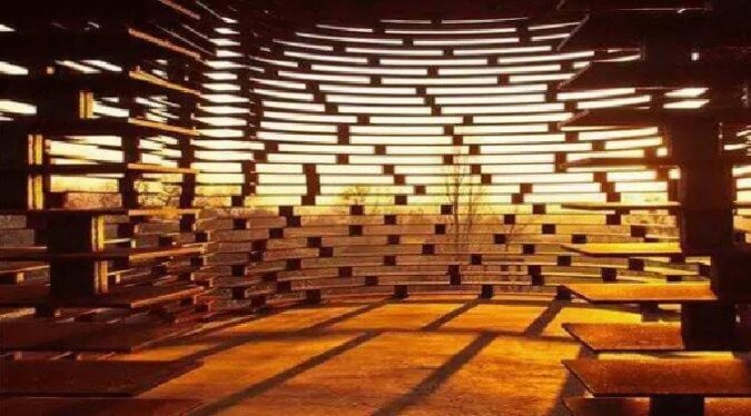 Ten 10-metrowy kościół został zbudowany ze 100 warstw stalowych płyt, ważących w sumie prawie 30 ton. Wgłębienia między nimi miały stworzyć wrażenie lekkości. Budowa kościoła została zakończona we wrześniu 2011 roku.