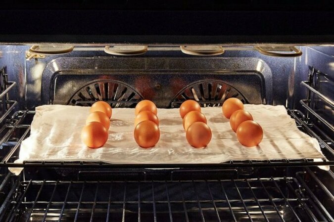 4. Ugotuj jajko w piekarniku. Jak się okazuje, można nie tylko ugotować jajka na twardo, ale również upiec je w piekarniku. Trwa to dłużej, ale jeśli masz do przygotowania dużą ilość na raz na ucztę, profesjonaliści zapewniają, że jest to doskonały sposób. Jajko należy piec na wilgotnej ściereczce przez 30 minut w temperaturze 160 stopni.