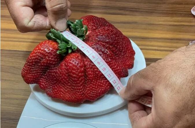 Truskawka należy do odmiany „Ilan” opracowanej przez Nira Dayema, badacza z Israel Agricultural Research Organization. Postawił sobie za cel uzyskanie obfitych zbiorów, więc ta truskawka ma zdolność łączenia pojedynczych jagód w jedną mega jagodę. W styczniu było zimno, więc truskawki dojrzewały powoli, co pozwoliło jej przybrać tak imponującą wagę.
