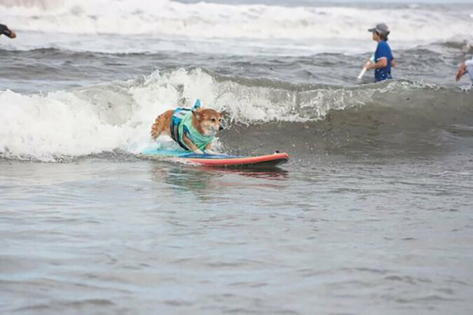Na szczęście leczenie pomogło psu. Aby w pełni odzyskać zdrowie, lekarzy zalecili Jojo kąpiele wodne. W ten sposób pies stał się pierwszym na świecie corgi, który zaczął uprawiać surfing. Jojo ma nawet kolekcję kombinezonów do pływania. To miłe, prawda?