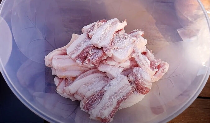 Marynata do słoniny składa się wyłącznie z soli. Dobrze posól i wymieszaj.
