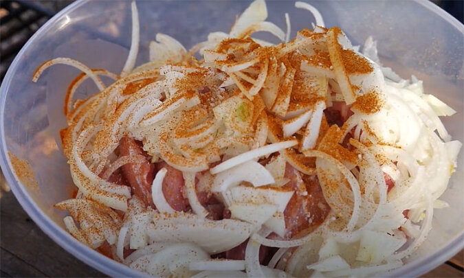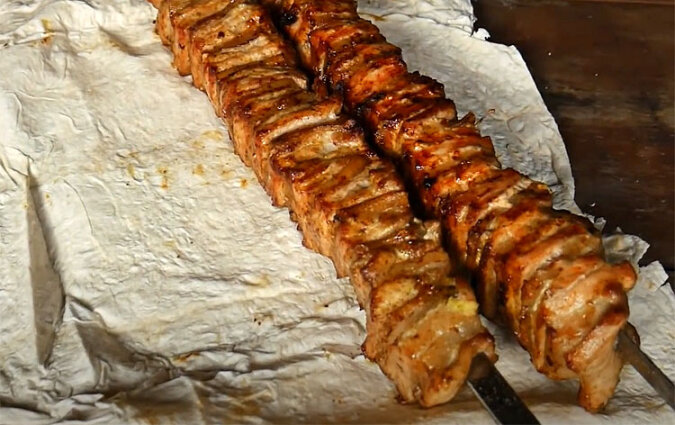 Zazwyczaj mięso na szaszłyki należy zamarynować z wyprzedzeniem, ale istnieje inna metoda przyrządzania, która sprawi, że mięso będzie niesamowicie soczyste. W tym przypadku mięso jest najpierw marynowane i przekładane kawałkami słoniny, a następnie nadziewane na szpadki i rozdzielane na poszczególne porcje. Dzięki temu szaszłyk jest w kształcie kwadratu, co jest również wygodne, gdy podaje się go na talerzu.