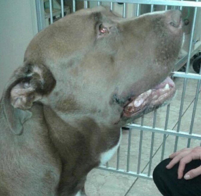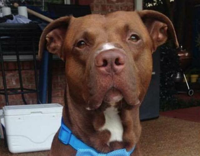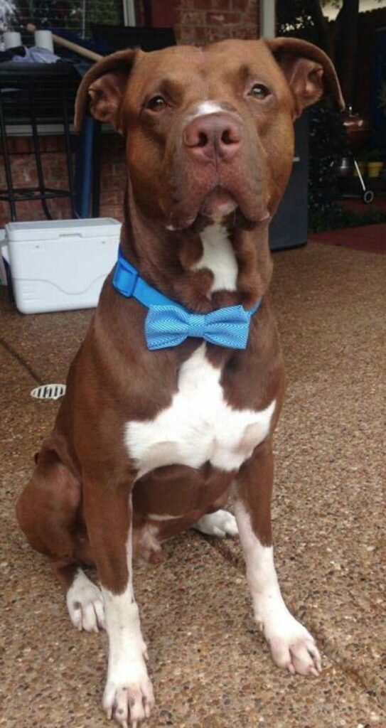 Na tym zdjęciu widzimy Hurley’a, wspaniałego psa pitbulla: