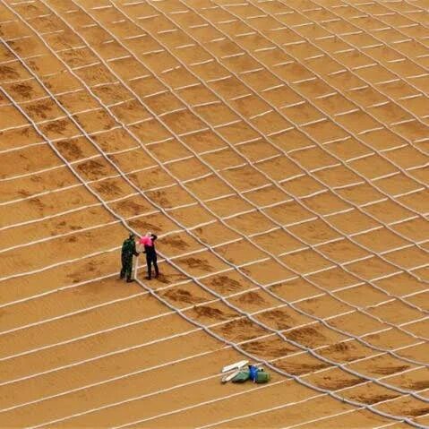 W przeszłości do wyrównywania powierzchni używano traktorów, co bardzo utrudniało cały proces. Obecnie Chińczycy sadzą drzewa tylko na zboczach wydm, zgodnie z kierunkiem wiatru. Wiatr sam wyrównuje powierzchnię wydmy.