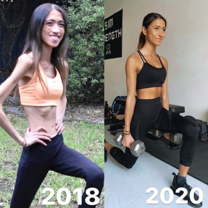 W ciągu dwóch lat Sarah zdołała przytyć 19 kilogramów. Aby nabrać masy mięśniowej, zaczęła chodzić na siłownię i stosować się do zaleconego planu treningowego.